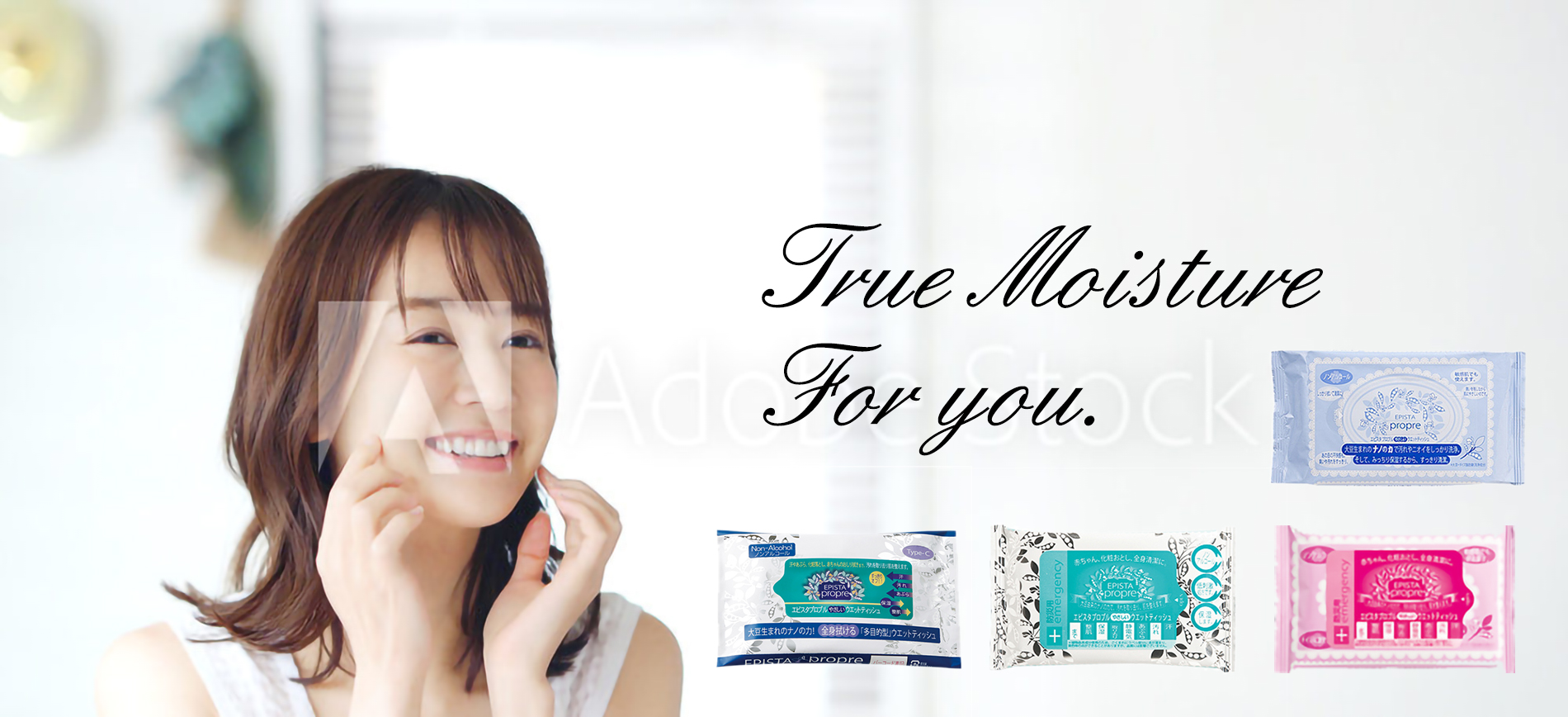 世の中の約90%のウェットティッシュは雑貨類に分類され、基本的には机や床などを対象とした対物使用製品です。それに対し、エピスタプロプルは敏感肌の方も安心してご利用頂けるように開発された化粧品。全身どこでも安全に拭く事ができます。